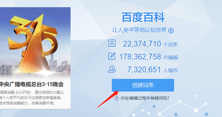 第一步:打开百度百科的官网地址 https://baike.baidu.com/ 点击屏幕上的 创建词条,如下图